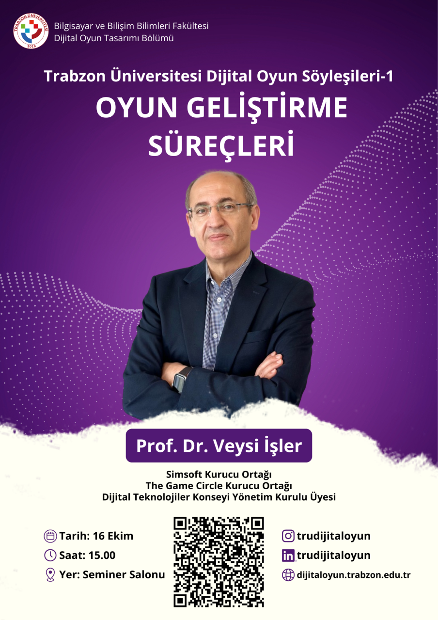 Trabzon Üniversitesi Bilgisayar ve Bilişim Bilimleri Fakültesi Dijital Oyun Tasarımı Bölümü tarafından düzenlenen “Dijital Oyun Söyleşileri” etkinlik serisinin ilki, Simsoft ve The Game Circle firmalarının kurucu ortağı Prof. Dr. Veysi İşler’in katılımıyla gerçekleştirildi.